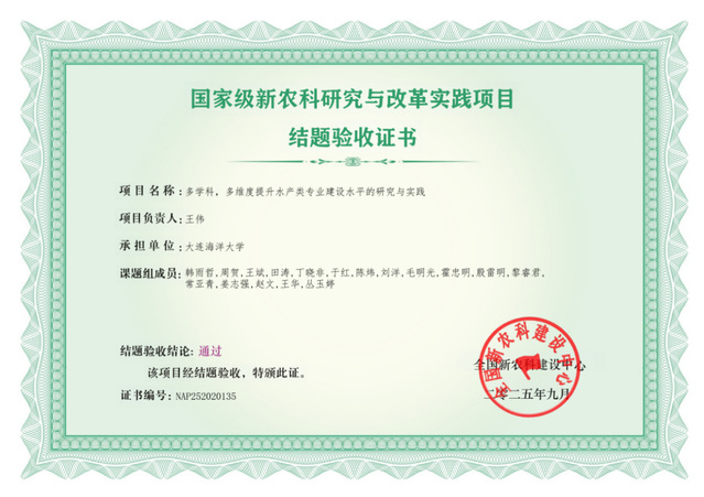近日,教育部办公厅发布《关于公布新农科研究与改革实践项目结题验收结果的通知》(教高厅函〔2025〕12号),我校主持的3项新农科项目均顺利通过结题验收。其中,《多融共通,特色引领,构建现代渔业产教协同育人体系》结题验收结论为优秀,《一主两翼三融合,涉海农科多样化人才培养模式的创新实践》《多学科,多维度提升水产类专业建设水平的研究与实践》两个项目通过验收。